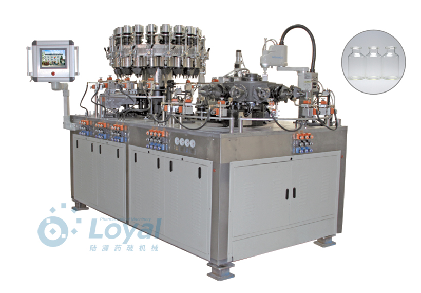 西林瓶生產(chǎn)線(xiàn)包括:自動(dòng)上管、自動(dòng)成型、經(jīng)機(jī)械手轉(zhuǎn)換至前端檢測(cè)線(xiàn)(也叫生產(chǎn)管控)、檢測(cè)線(xiàn)檢測(cè)的項(xiàng)目:1、瓶口內(nèi)外徑 2、瓶身長(zhǎng)短 3、瓶身外徑 4、瓶口邊厚 5、瓶底內(nèi)凹尺寸檢測(cè);經(jīng)檢測(cè)后的合格品再用機(jī)械手夾盤(pán)轉(zhuǎn)換至退火爐網(wǎng)帶上,經(jīng)高溫減除應(yīng)力后再降溫,通過(guò)氣動(dòng)吸盤(pán)將回火后的小瓶轉(zhuǎn)換至后端檢測(cè)線(xiàn),后端檢測(cè)(也是重檢也叫終檢),經(jīng)后端拍照檢測(cè)項(xiàng)目